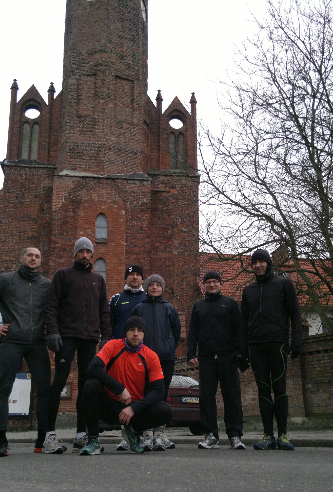 Okazuje się, że im bliżej końca tym więcej chętnych… Na szczęście po zakończeniu naszego cyklu Mszy Biegowych pojawi się substytut, na dodatek bardziej atrakcyjny i przede wszystkim w bardziej sprzyjającej aurze:) Ale wróćmy do rzeczy. 9 Msza Biegowa zmotywowała kolejne 2 nowe osoby – pierwszą z nich była pani Halinka, która biega też z nami na Słudzibiu, a drugą Piotrek, także znany ze Słudzibia. Spotkaliśmy się pod kolejną na naszym szlaku słupską parafią – kościołem pw. Świętego Jacka. Temperatura powietrza w granicach O’C, bez opadów, całkiem dobra aura do biegania.