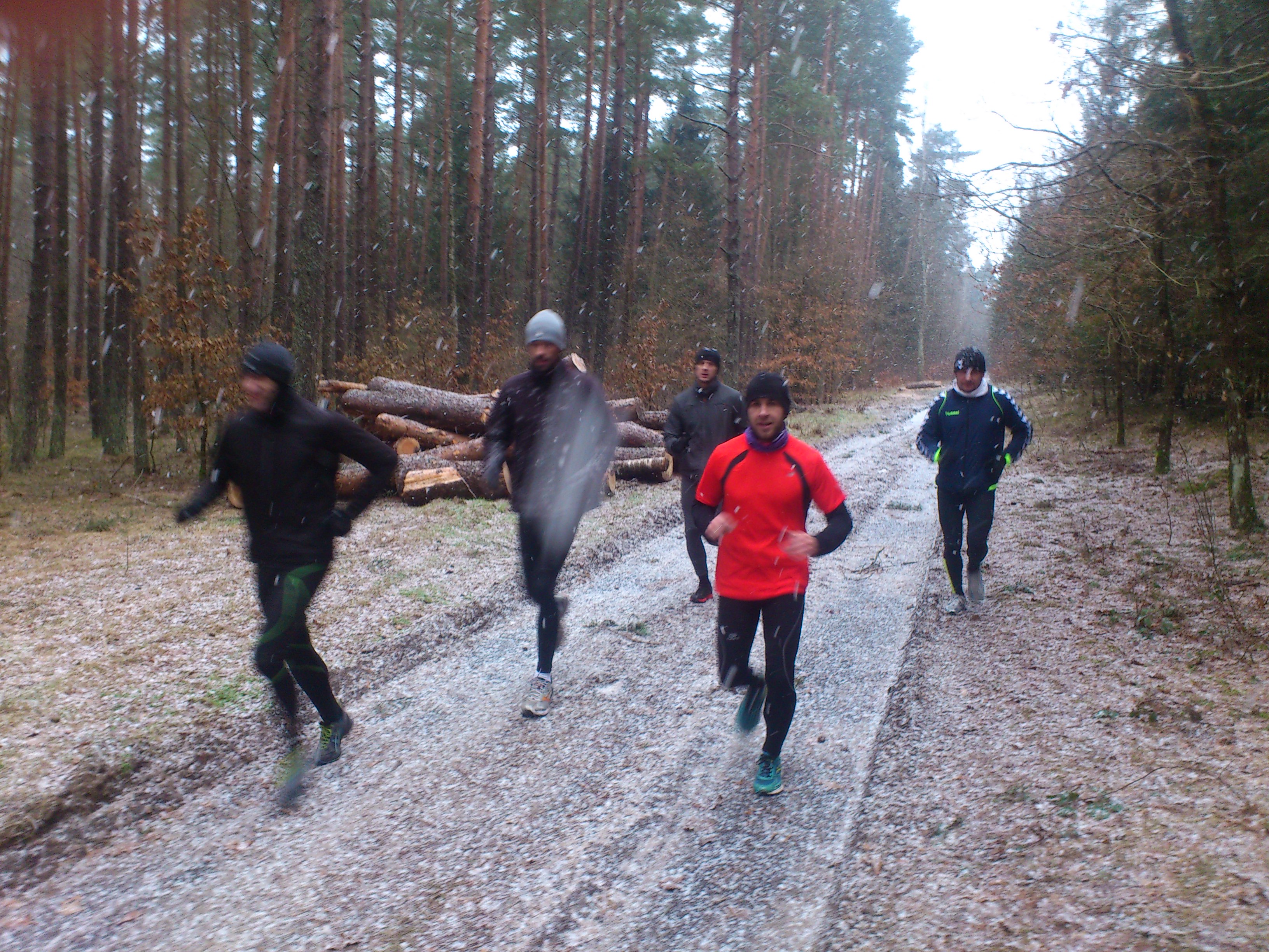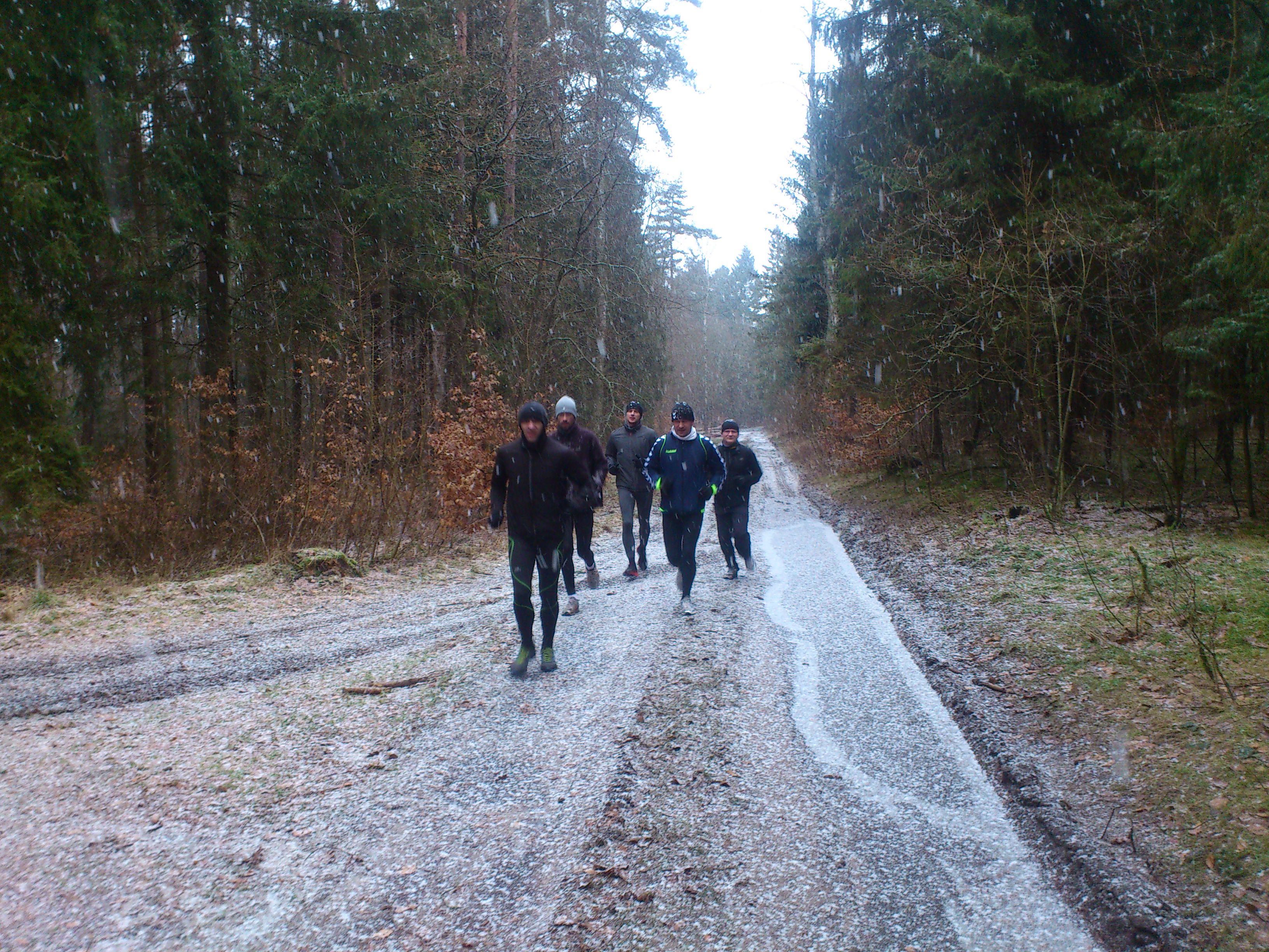 Po pamiątkowym zdjęciu wyruszyliśmy w 7 osobowym składzie w kierunku Parku Kultury i Wypoczynku, a następnie alejką Brzozową w stronę Krępy. Pani Halinka prosiła, żeby nie sugerować się jej tempem, więc została z tyłu. Biegło się wolno i przyjemnie, zaczął prószyć suchy śnieżek i było naprawdę fajnie.